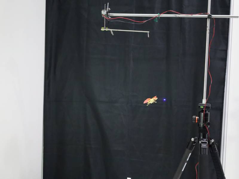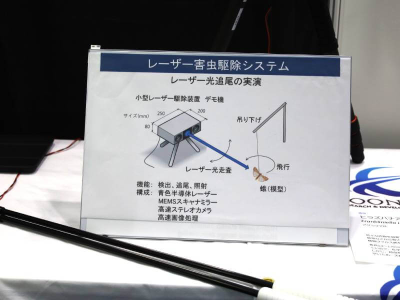 実演していたレーザー害虫駆除システム。害虫の横に見える青い点がレーザー。